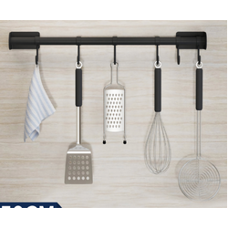40CM 1 Set of Hooks and Rail (5 hooks + 1 rail + 2 wall brackets + glue&screw)