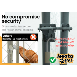 The NeataPet utilises a traditional bolt latch system for the door, which ensures animals are far more secure than basic flip up mechanisms offered on most other models on the market. There is also an option to further secure the door with a padlock.