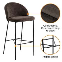 Elevate the style of your kitchen or home bar with the Nelson Barstool. This piece boasts a sleek contemporary design that perfectly blends functionality and aesthetics. Wrapped in a 100% polyester fabric, it offers a comfortable and durable seating experience. The sturdy steel frame powder coated in a stylish black finish ensures longevity while complementing the overall design. Its low backrest and integrated footrest offer the ultimate in comfort and support. With its 100cm height, this barstool is designed to fit seamlessly under standard countertops, making it an excellent choice for kitchens and bars alike.