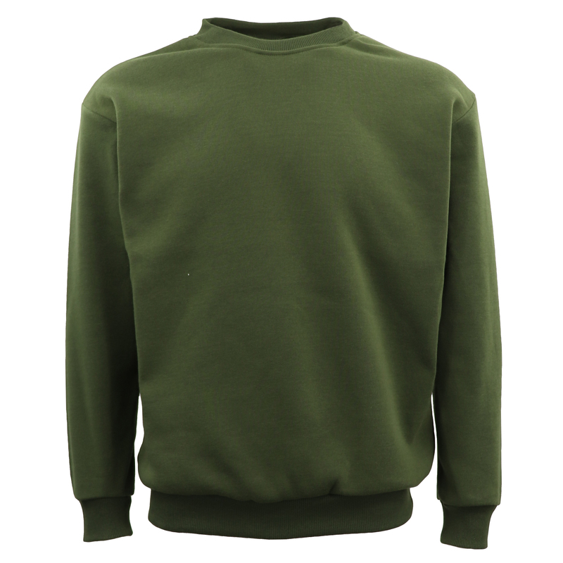 New Adult Unisex Plain Pullover Fleece Jumper Mens Long Sleeve Crew Neck Sweater, Olive, 4XL
