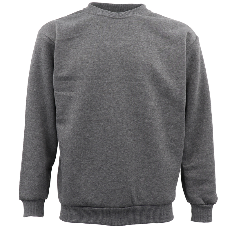 New Adult Unisex Plain Pullover Fleece Jumper Mens Long Sleeve Crew Neck Sweater, Grey, L