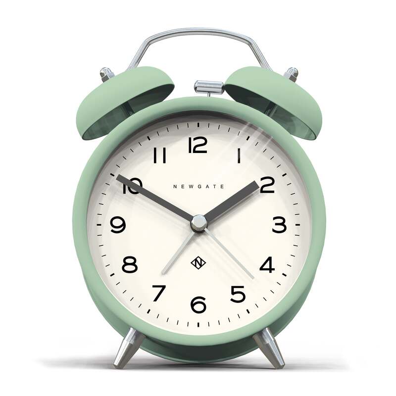 Newgate Charlie Bell Echo Matte Neo Mint A Neo Mint alarm clock with a colourful modern matt-finish case, contemporary graphic dial and a moving hammer and twin-bell alarm.