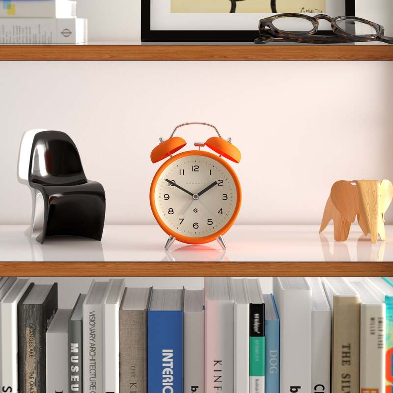 Newgate Charlie Bell Echo Matte Orange A modern 'Pumpkin' orange alarm clock with a colourful matt-finish case, contemporary graphic dial and a moving hammer and twin-bell alarm.