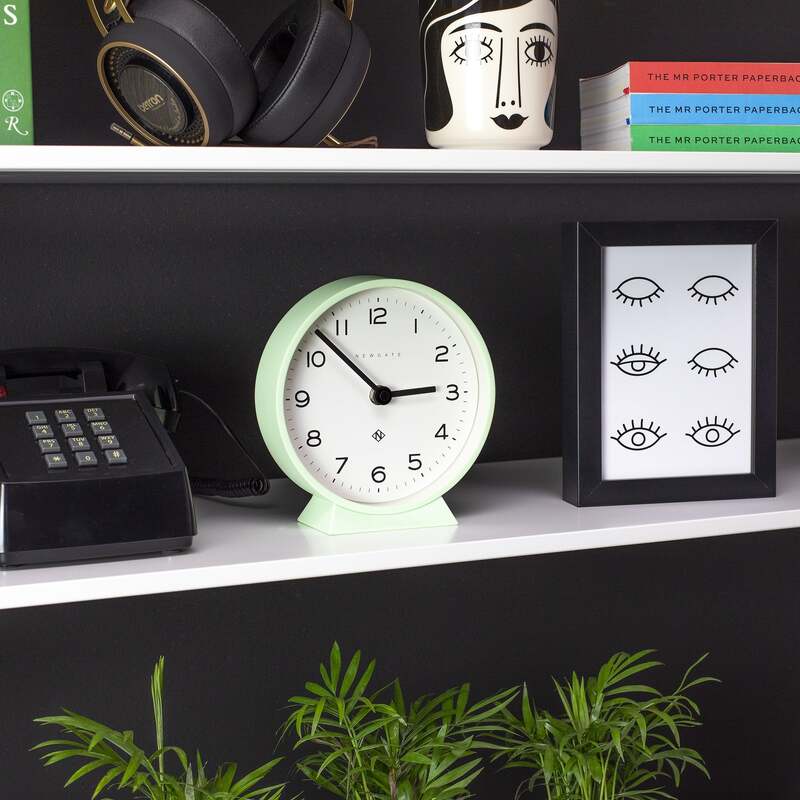 Newgate M Mantel Clock Neo Mint A modern mantel clock with a colourful bright Neo Mint silicone finish.