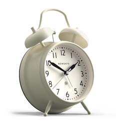 Our iconic twin-bell alarm clock in classic 'Linen' white. This classic style metal alarm clock has a contemporary dial and real moving hammer-and-bell action for a traditional wake-me-up.