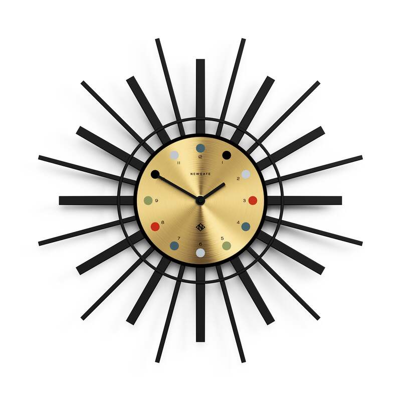 Newgate Stingray Wall Clock Black - Gold Dial Retro Style Sunburst Wall Clock | Black and Brass
