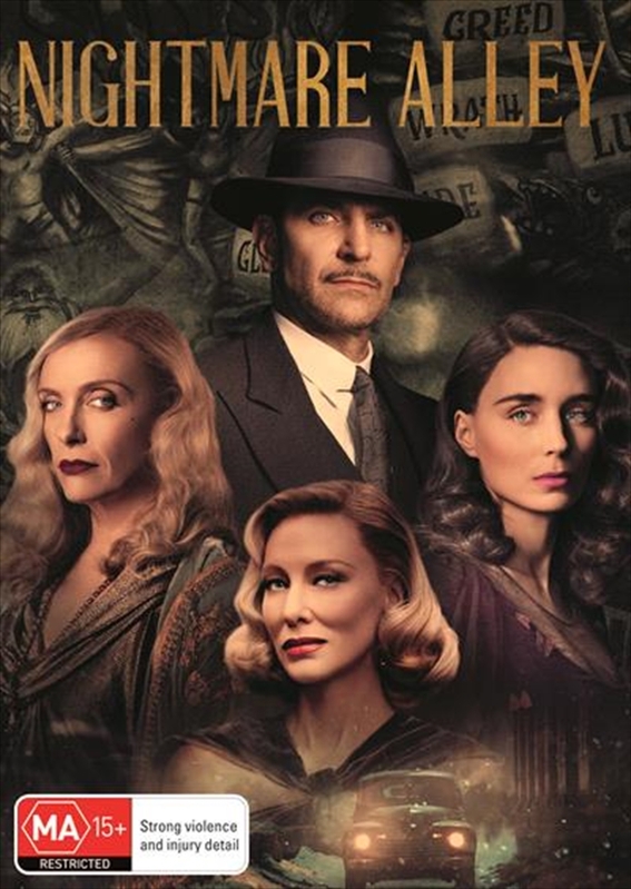 When charismatic but down-on-his-luck Stanton Carlisle (Bradley Cooper) endears himself to clairvoyant Zeena (Toni Collette) and her has-been mentalist husband Pete (David Strathairn) at a traveling carnival, he crafts a golden ticket to success, using this newly acquired knowledge to grift the wealthy elite of 1940s New York society. With the virtuous Molly (Rooney Mara) loyally by his side, Stanton plots to con a dangerous tycoon (Richard Jenkins) with the aid of a mysterious psychiatrist (Cate Blanchett) who might be his most formidable opponent yet. A film by Guillermo del Toro.