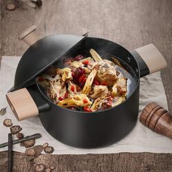Non-stick Carbon Steel Dutch oven soup pot pan frying pan with lid wooden handle