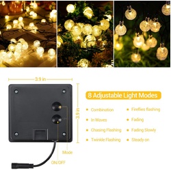 - Lighting Modes: Combination, Fireflies Flashing, In Waves, Fading, Chasing Flashing, Fading Slowly, Twinkle Flashing, Steady On