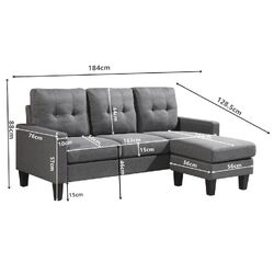 Product Dimensions: Size: 184*76/128.5x86.5cmH seater height 45cm, seater depth:50cm Backrest :41.5cm Armrest:10x56cm H seater inner:163cm chaise 102cm leg 15cm ,ottoman:55*55*45cm