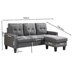 Product Dimensions: Size: 184*76/128.5x86.5cmH seater height 45cm, seater depth:50cm Backrest :41.5cm Armrest:10x56cm H seater inner:163cm chaise 102cm leg 15cm ,ottoman:55*55*45cm