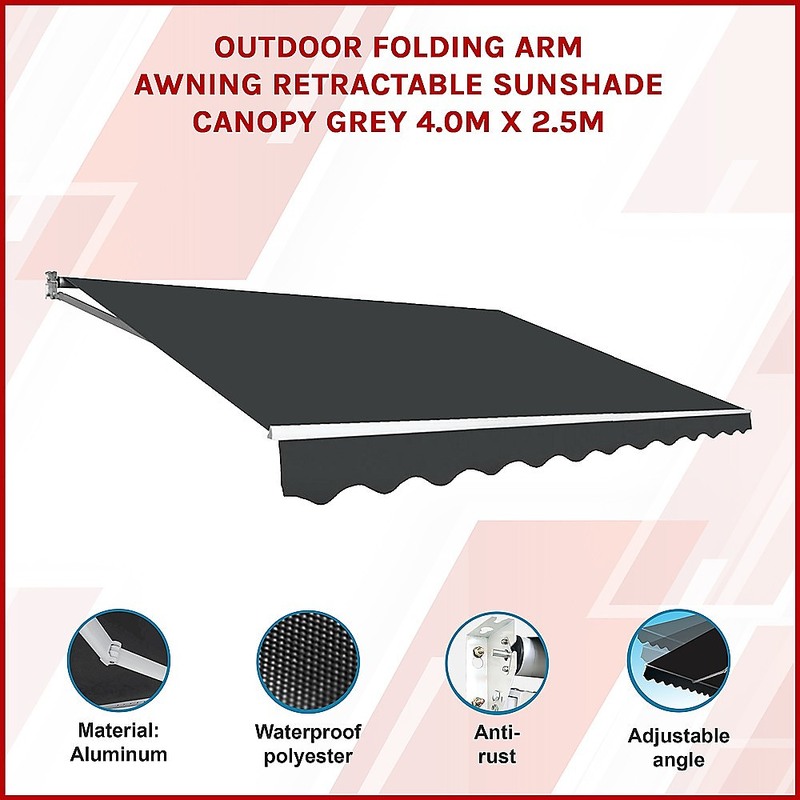 Outdoor Folding Arm Awning Retractable Sunshade Canopy Grey 4.0m x 2.5m