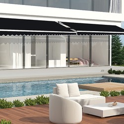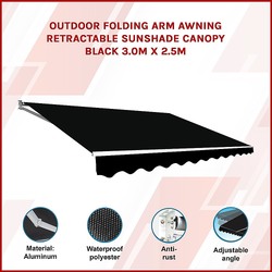 Outdoor Folding Arm Awning Retractable Sunshade Canopy Black 3.0m x 2.5m