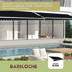 Designed to last, this awning features a rugged aluminium frame, powder-coated for extra protection. Wind-resistant, UV-resistant, rust-resistant, fade-resistant and water-resistant, this awning will serve you well for years to come. The shade itself is made from 300-gsm high-quality 100 per cent polyester that stands up to whatever Mother Nature throws at it, while its neutral black profile adds kerb appeal to your home.