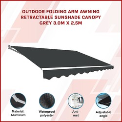 Outdoor Folding Arm Awning Retractable Sunshade Canopy Grey 3.0m x 2.5m