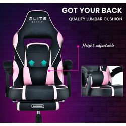 Presenting the new Elite Series Gaming Chair from OVERDRIVE. Designed by gamers for gamers, it represents a commitment to cover all bases in delivering next level support. With a distinctive pink design, this Race seat is crafted according to strict quality standards. The Elite series is sure to reign supreme in any home setup or gaming cafe.