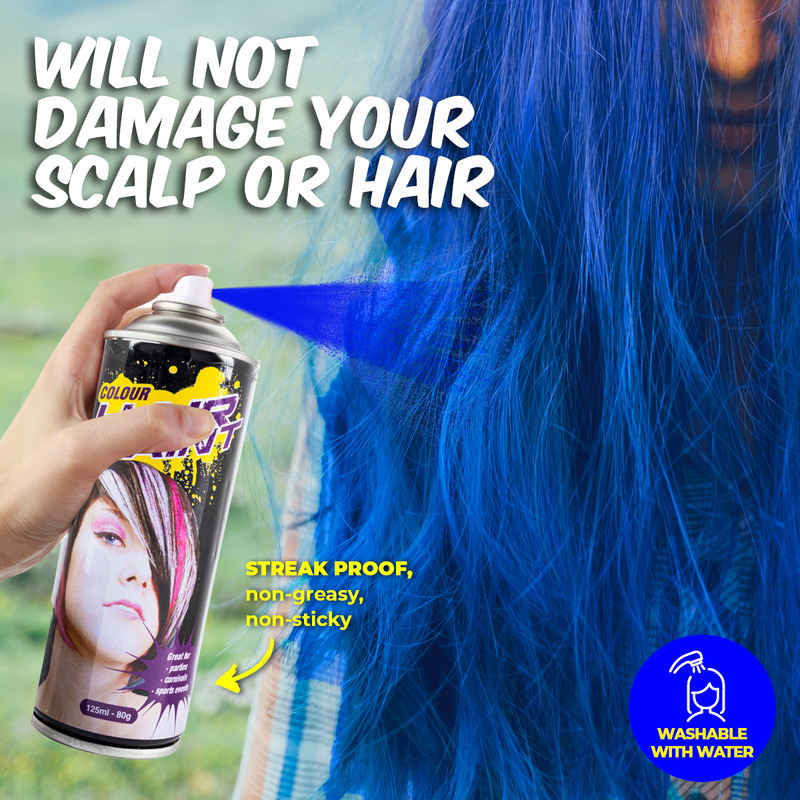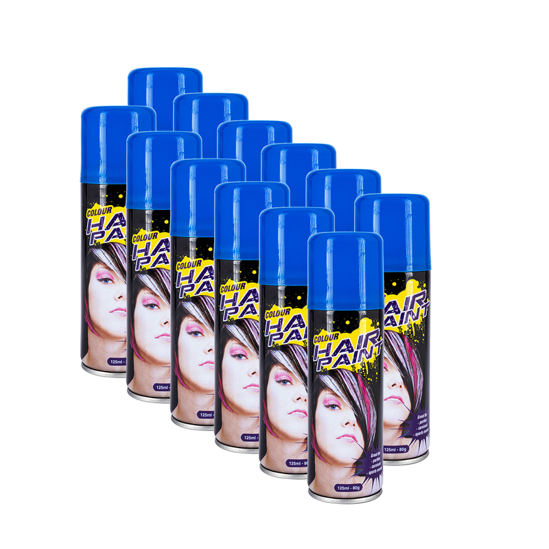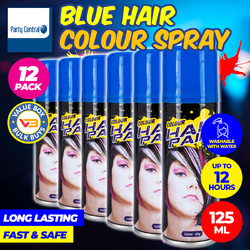 Party Central 12PCE Hair Spray Blue Long Lasting Non-Sticky 125ml