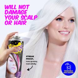 Party Central?? These hair spray paints are great for occasions such as; parties, carnivals, sports events, and dress up. With a non-greasy and non-sticky formula that does not damage scalp or hair, your hair will look amazing in crisp white!