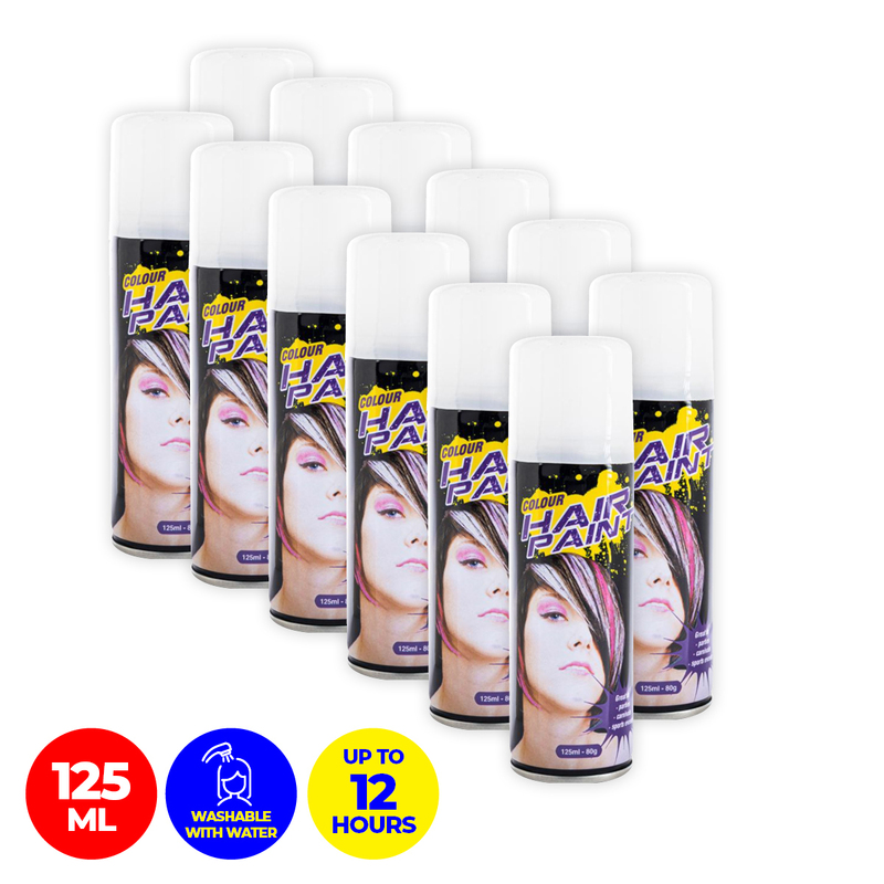 Party Central 12PCE Hair Spray Crisp White Long Lasting Non-Sticky 125ml