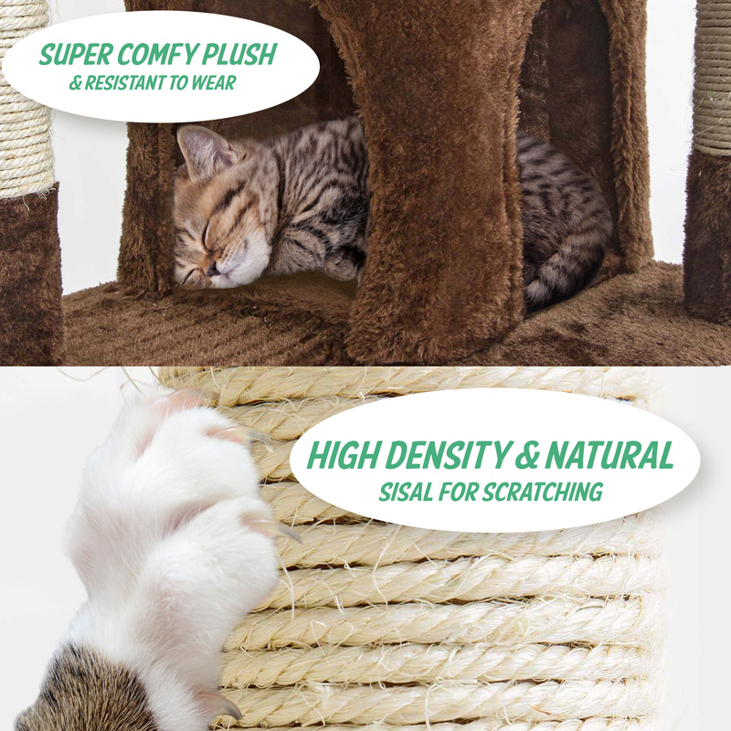- Plush carpet platforms to give your cat comfortable resting/playing