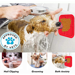 Pawfriends 4in1 Silicone Pet Lick Mat Cat Puppy Dog Slow Feeder Grooming Helper Mat Red