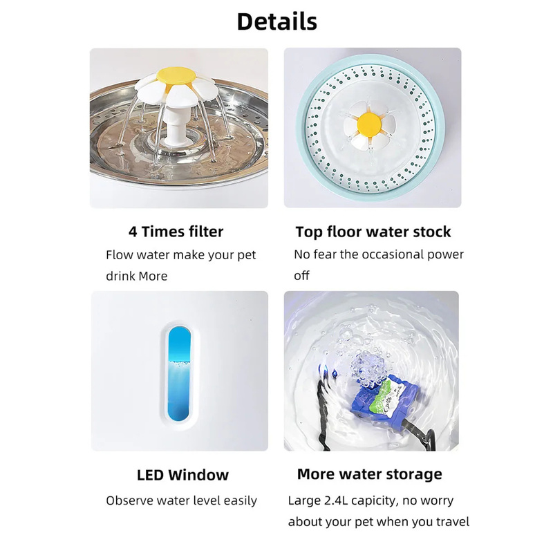 Pawfriends LED Automatic Electric Pet Water Fountain Dog Cat Drinking Dispenser Blue
