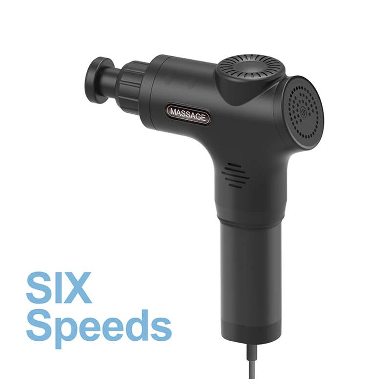 Lightweight and low working noise, the massager pistol uses percussion therapy. It features an anti skid silicone handle, and comes with 6 different massage heads to target certain muscles for deep tissue penetration.The handy massager features a powerful motor with 1-6 speed functions to tailor your massage experience to your liking.