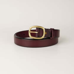 Elevate your wardrobe with the Peroz Arianna Belt, a classic fashion staple featuring a luxurious full grain leather strap in dark brown, accented with a stylish gold buckle. It offers a broad range of sizes and a minimalist design, making it a versatile choice for any outfit.