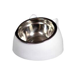 Pet Dog Cat Food Bowl Raised No Slip Stainless Steel Tilted Water Food Feeder