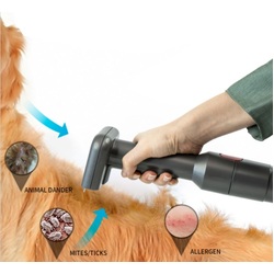 Our pet hair attachment makes grooming your pet a mess-free experience. It easily removes loose hair directly from your pet's coat and transfers it into the vacuum, eliminating the need for you to sweep or vacuum up pet hair from your floors and furniture.