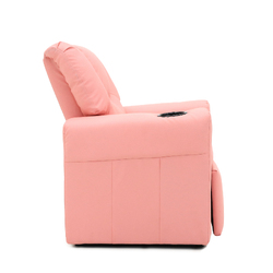 This recliner offers total luxury, from the soft PU leather, it?? wide armrest and built-in cup holder??Kids will totally feel pampered.
