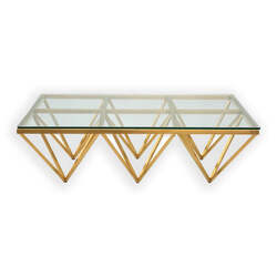 The Pinnacle Gold Coffee Table - X-Large is a stylish and modern coffee table that will add a touch of sophistication to any living space. Its sleek design and extra-large size make it a statement piece that will add character and style to any room in your home.