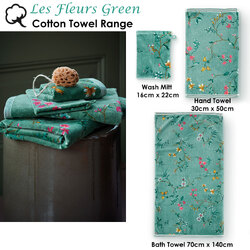 The Les Fleurs Green Wash Mitt by PIP Studio features a print of elegant flower branches with small, stylised flowers in green, white, blue, red, and yellow colour tones. The Les Fleurs bath linen series pairs beautifully with the other bath linen series by Pip Studio, which creates a lovely mix-and-match effect in your bathroom. The Fleurs wash mitt and towel is made from 100% high-quality cotton terry velour with a quality of 500gsm.
