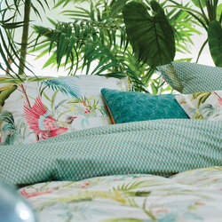 Get your bedroom summer-ready with this Palm Scenes White Cotton Quilt Cover Set by PIP Studio. It has a tropical print with palm trees, a blue sea, and faraway desert islands printed in white, teal, green, red, yellow, pink, orange, brown, and black soothing tones. The perfect print for a tropical daydream! An exotic bird of paradise flits between the trees. If you look closely, you'll spot a parakeet among the palm fronds. The back of the quilt cover and the pillowcases feature a detailed geometric tile pattern. The pillowcases and the quilt cover have an Oxford trim and coloured piping. The pillowcases have fabric buttons. This makes the cushion reversible, which creates a lovely mix-and-match effect on your bed. The quilt cover is made of 100% cotton percale.