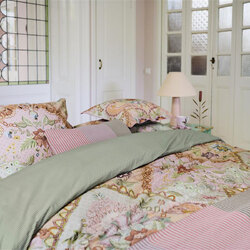 The Saluti Grandi Pastel Cotton Quilt Cover Set by PIP Studio features a symmetrically constructed floral pattern, inspired by the beautiful wallpaper motifs found in Italy. The back features a pattern of white and blue horizontal stripes. The quilt cover and the pillowcases have a stitched Oxford border on the sides, adding to the luxurious look. The pillowcases have a tie closure and an attractive design on both sides, just like the quilt cover. Perfect for creating a quirky mix-and-match effect. The quilt cover is not only an eye-catcher in your bedroom, the use of 100% cotton percale makes the cover wonderfully soft and the 200TC weave density ensures that the fabric remains beautiful for a long time.