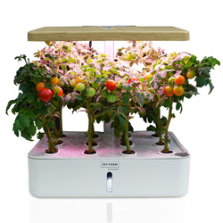 The MY FARM 12 Pod Indoor Hydroponics Growing System is an elegant addition to any home decor, allowing you to grow plants indoors at a 30-50% faster rate than conventional soil planting. With high performing automatic LED lights and a quiet auto water circulation system, you can conveniently produce freshly grown veggies, fruits and herbs in no time.