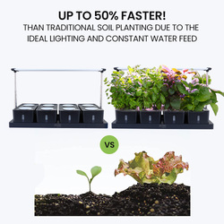 The MY FARM 20 Pod Indoor Hydroponics Growing System is an elegant addition to any home decor, allowing you to grow plants indoors at a 30-50% faster rate than conventional soil planting. With high performing automatic LED lights and a quiet auto water circulation system, you can conveniently produce freshly grown veggies, fruits and herbs in no time.