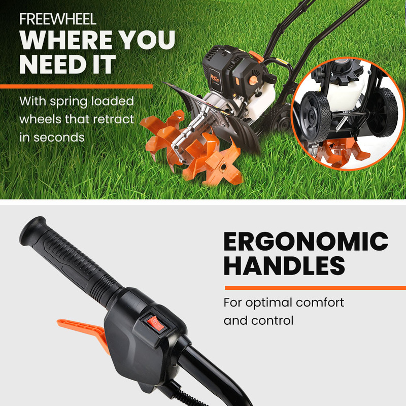 PLANTCRAFT 46CC Garden Cultivator Tiller Handheld 15" Inch Petrol 4-Stroke Titan 9