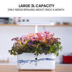 Designed for easy set-up, the MY FARM Hydroponics System has a large 3L water reservoir and a water viewing window which greatly reduces the need to rewater the plants, while using 90% less water than traditional growing methods. All the joy of gardening without the hassle!