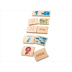 This 20-piece wooden tile set makes learning numbers as easy as 1-2-3! The two-sided tiles feature number 1-10, colorful pictures and words that help children count, match, spell and trace the numbers. Suitable from 2 yrs+