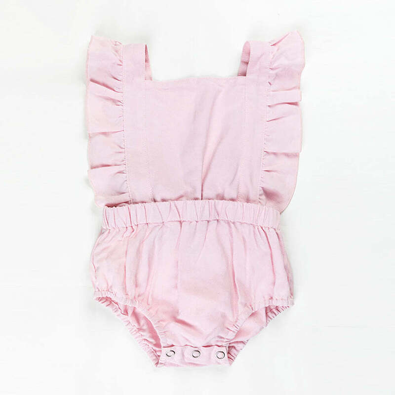 Adore her with pretty frills, this little romper is just the thing for spring and summer. The natural cotton construction will keep you new born baby or toddler nice and cool.