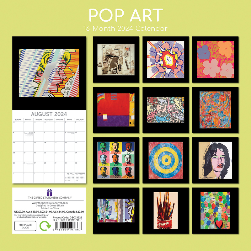 Pop Art 2024 Square Wall Calendar 16 Months Arts Planner Christmas New Year Gift
