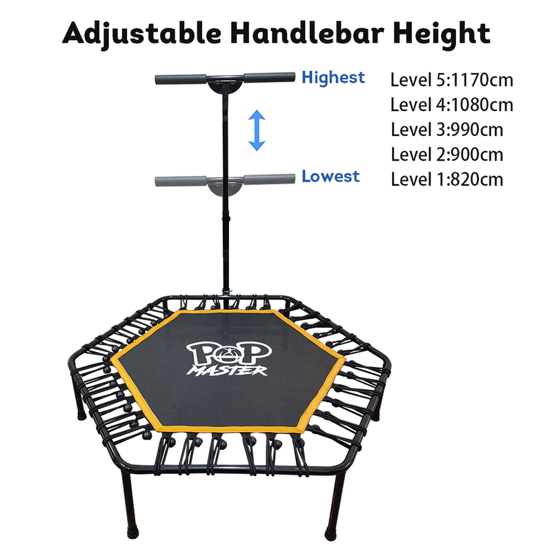 POP MASTER 5FT Indoor Trampoline Hexagon Fitness Rebounder w/ Adjustable Handle Bar