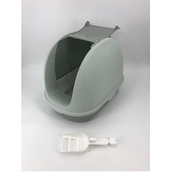 YES4PETS Portable Hooded Cat Toilet Litter Box Tray House with Scoop and Grid Tray Grey