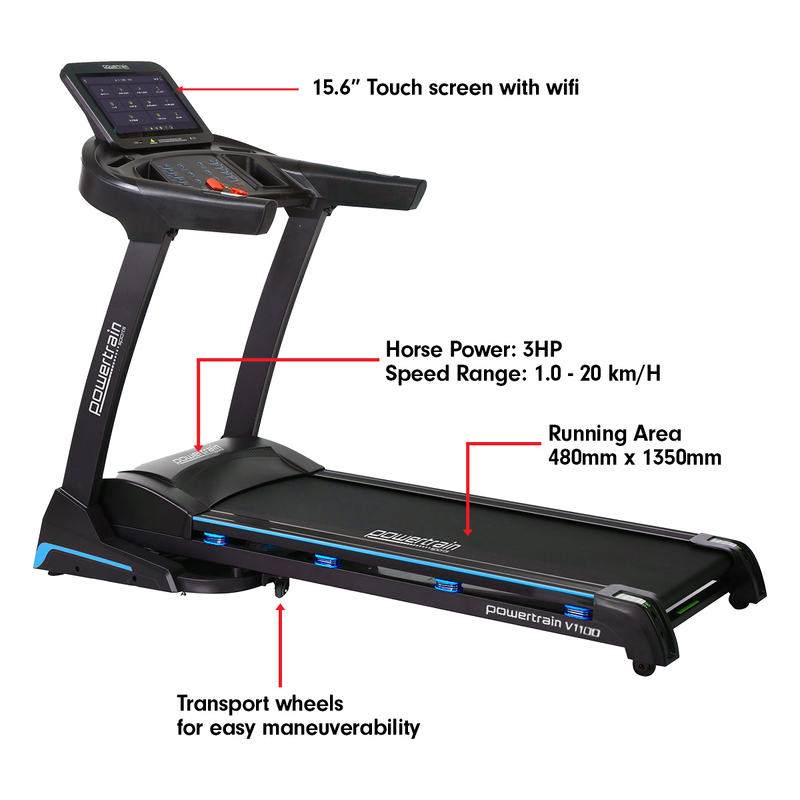 Powertrain V1100 Treadmill with Wifi Touch Screen & Incline
