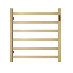 Premium Brushed Gold Heated Towel Rack with LED control- 6 Bars, Square Design, AU Standard, 650x620mm Wide