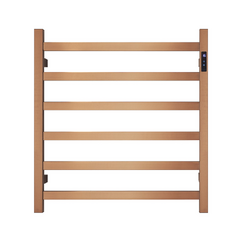 Premium Brushed Rose Gold Heated Towel Rack with LED control- 6 Bars, Square Design, AU Standard, 650x620mm Wide