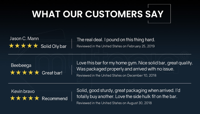 Working out means working up a sweat. Fortunately, our Olympic bar features a diamond-knurling that is designed to give you a secure grip.