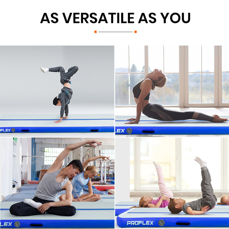 Engineered to be thick and durable, the Proflex Air Track is crafted with premium 1000-denier drop stitch technology and the combination of rail band and high density PVC fabric. Offering plenty of bounce and ensuring the right amount of stability. You??l have the control you need to stick landings during even the most complex gymnastics or martial arts routines!