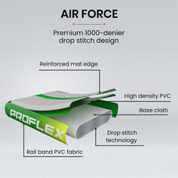Engineered to be thick and durable, the Proflex Air Track is crafted with premium 1000-denier drop stitch technology and the combination of rail band and high density PVC fabric. Offering plenty of bounce and ensuring the right amount of stability. You??l have the control you need to stick landings during even the most complex gymnastics or martial arts routines!